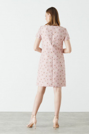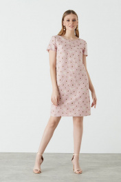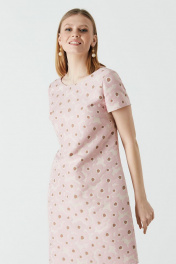 Платье midi с абстрактным принтом и коротким рукавом Nelva 51001 розово-кремовый-жаккард