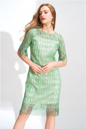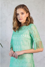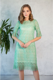 Платье из кружевного полотна с бахромой до колен Nelva 51145 мятный
