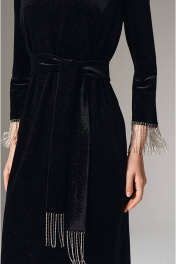 Вечернее женское платье на подкладке от бренда NELVA — это идеальный выбор для тех, кто ценит комфорт и элегантность в своем гардеробе. Платье прекрасно подчеркнет Вашу индивидуальность и уверенность в себе. Оно обязательно подойдет для особого случая. Элегантное платье прямого силуэта, выполнено из бархатного полотна с эффектом мерцания. Рукава ¾, декорированы бахромой из страз и придают образу легкость и подвижность. Дополняется платье поясом-лентой из основного полотна с бахромой из страз. Этот предмет гардероба — идеальный спутник для особых моментов и создания впечатляющих образов. С любовью и заботой о Вас, команда бренда NELVA.