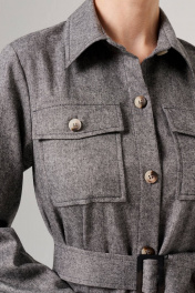 Стильное платье-рубашка для уверенных женщин, ценящих комфорт и стиль. Свободный силуэт, лаконичный дизайн и интересные детали делают это платье идеальным выбором для современной женщины, стремящейся сочетать комфорт и элегантность. Платье выполнен из из приятного смесового полотна. Отложной воротник-стойка прекрасно подчеркнет шею и придаст образу легкость. Центральная застежка и нагрудные накладные карманы с клапанами, декорированные роговыми пуговицами, обеспечивают уникальный стиль. Дополняется платье поясом-лентой из основного полотна с роговой пряжкой. Платье прекрасно можно комбинировать с водолазкой, высокими сапогами и любимыми акссесуарами. Выбирайте этот вариант, если хотите выразить свою индивидуальность и одновременно насладиться легкостью и свободой движений. С любовью и заботой о Вас, команда бренда NELVA!