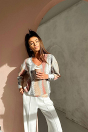 Женский джемпер Nika.pl. Мягкий трикотаж из акрила приятен к телу и дарит ощущение комфорта. Свободный крой с заниженной линией плеча подойдет для фигуры любого типа. Модель дополнена V-образным вырезом горловины и длинными рукавами. Рукава имеют длинную манжету с декоративными пуговицами. По низу резинка, что обеспечит хорошую посадку на любую фигуру.