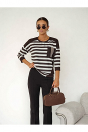 Обратите внимание на таблицу замеров! Блузка женская повседневная выполнена из мягкого польского трикотажа с добавлением вискозы, что делает ее не только стильной, но и комфортной в носке. Прямой силуэт блузки подчеркнет достоинства вашей фигуры. На груди блузка украшена потрясающим "сеткой-карманом"с люверсами, что придает ей особый шарм. Круглый вырез горловины делает модель универсальной и подходящей для любого случая. Спина в полоску, с декоративными пуговицами на планке по середине спинки, что создает элегантный и захватывающий вид.