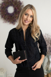 Круглогодичная черная блуза свободного силуэта из хлопка Nika.PL 0301204