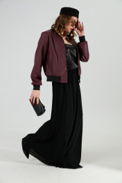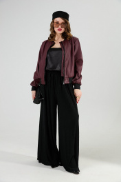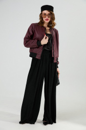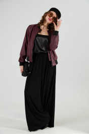 Брюки-юбка свободного кроя из трикотажного гофре, верхний срез представлен широкой резинкой.