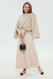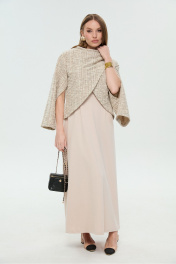 Укороченный джемпер-кейп с округлой горловиной и фигурным лифом. Рукав втачной широкий , от линии локтя до запястья есть дополнительное отверстие для рук.