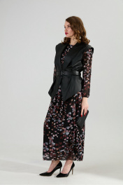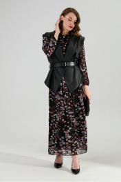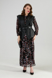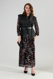 Жилет, платье, ремень NikVa 1021-1 листья мультиколор и чёрный
