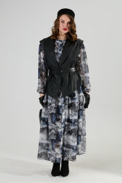 Жилет, платье, ремень NikVa 1024-1 чёрный и серая абстракция