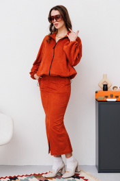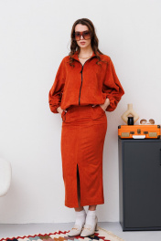 Миди юбка из замши на резинке с разрезом спереди NikVa 476-1 терракот