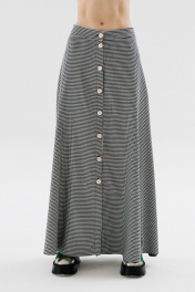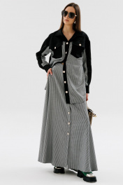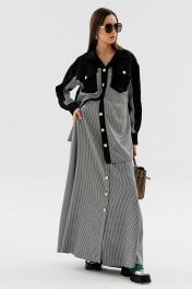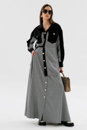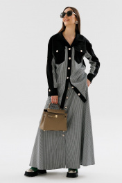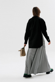 Юбка солнце миди с узким поясом и карманами NikVa 722-1 чёрно-белая_гус_лапка