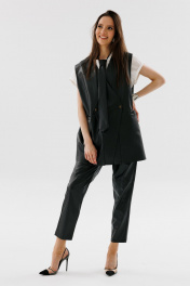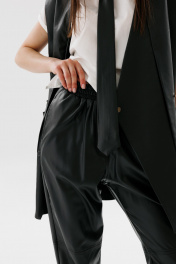 Брюки из экокожи с горизонтальным рассечением в области колена NikVa 733-1 чёрный