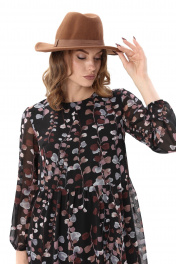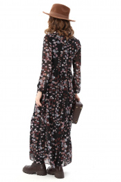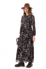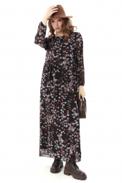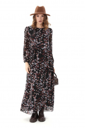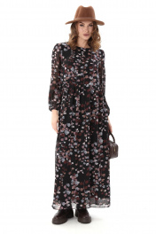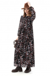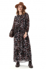 Платье макси прямого силуэта с округлым вырезом, отрезное по линии талии. Рукав немного приспущен, нижний край рукавов оформлен резинкой. Изделие на подкладке.