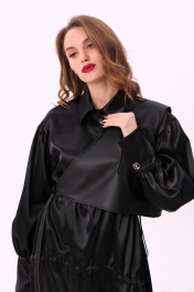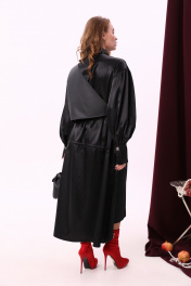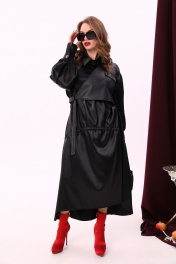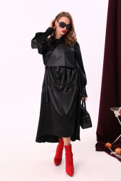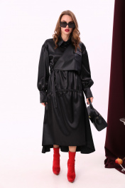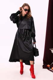 Миди платье свободного кроя из текстиля и экокожи с воротником-стойкой NikVa 802-1 чёрный