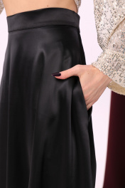 Черная макси юбка солнце с узким поясом и карманами NikVa 813-1 чёрный