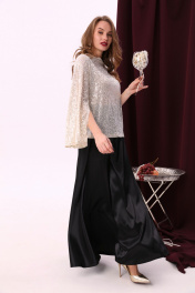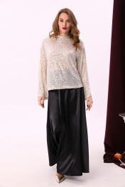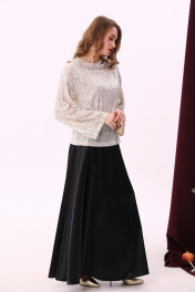 Юбка - солнце макси с узким поясом. В боковых швах расположены карманы. Застёжка на петлю и пуговицу и молнию по спинке.