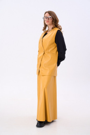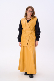 Юбка - солнце макси с узким поясом. В боковых швах расположены карманы. Застёжка на петлю и пуговицу и молнию по спинке.