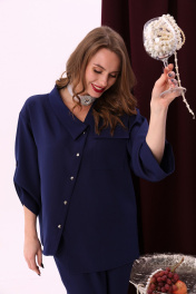 Жакет с асимметричным низом и накладными карманами из текстиля NikVa 902-1 сапфир