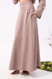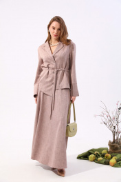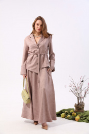 Костюм бежевый из жакета и юбки макси с карманами NikVa 917-3 песок