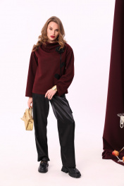Джемпер свободного кроя с воротником-стойкой из трикотажа NikVa 923-1 бордо