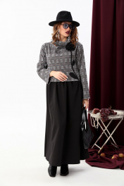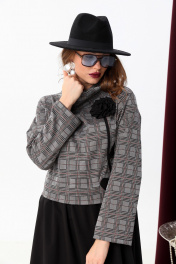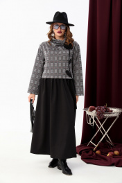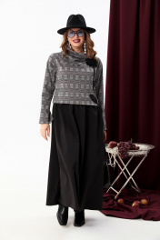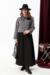 Платье прямого силуэта из текстиля с отделочной тканью NikVa 924-5 серая клетка+чёрный