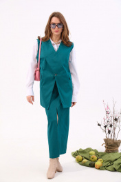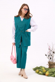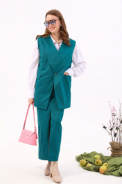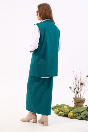 Бирюзовый джинсовый костюм с жилетом и юбкой NikVa 935-2 изумруд