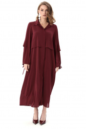 Платье макси с центральной отрезной застёжкой на потайную планку на петли и пуговицы.По переду и спинке цельнокроеные складки на уровне талии. Рукав втачной,одношовный рубашечноно типа. По низу рукава пробиты петли и вставлена завязка для фиксации сборки . Воротник рубашечный стояче отложной.