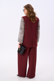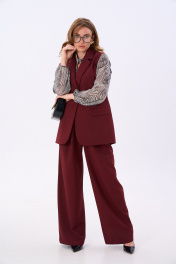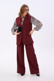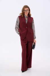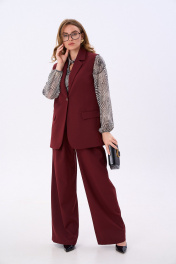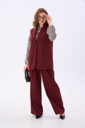 Жилет однобортный прямого силуэта с застежкой на петлю и пуговицу. Воротник стояче-отложной с отрезной стойкой с лацканами.Изделие с отрезным бочком. Перед с талиевыми вытачками, с прорезными карманами в рамку с клапанами. Край борта со скруглением по низу. Спинка со средним швом, в котором обработана шлица. Изделие на подкладке.