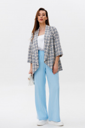 Брюки, жакет, топ NikVa 502-1 клетка+молоко+голобой