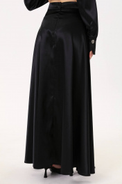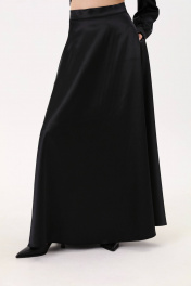 Юбка - солнце макси с узким поясом. В боковых швах расположены карманы. Застёжка на петлю и пуговицу и молнию по спинке.