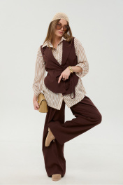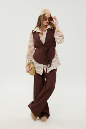 Брюки, жилет, рубашка NikVa 956-4 шоколад_песочные полосы