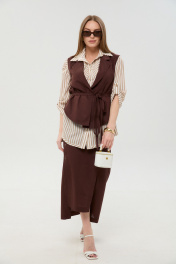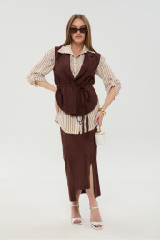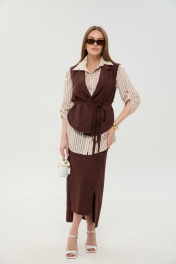 Жилет, рубашка, юбка NikVa 957-3 шоколад_песочные_полосы