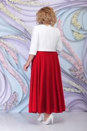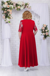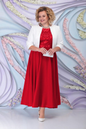 359 Комплект женский, 2-х предметный, (жакет, платье) Комплект женский, состоящий из платья и жакета. Платье полуприлегающего силуэта, отрезное по линии талии, со вставкой в виде пояса с нашитым кружевом спереди. Юбка полусолнца. Длина изделия по среднему шву спинки 134,0 см. Лиф с рельефами, выходящими из плечевого шва и до подрезного пояса. Средняя часть переда двойная, нижняя часть из основной ткани, верхняя из гипюра. Спинка с талиевыми вытачками и со средним швом, в котором обработана застежка на потайную тесьму молнию. Рукава втачные, одношовные, короткие, из гипюра. Горловина круглая, углубленная, обтачная. Изделие с плечевыми накладками. Короткий жакет, на подкладке, чуть приталенный, без застежки. Передняя половинка с рельефами, выходящими из проймы вниз. Спинка со средним швом и рельефами, выходящими из проймы вниз. Рукава втачные, двухшовные, длиной 43 см. Горловина круглая, обтачная. Изделие с плечевыми накладками. Ширина рукава по линии плеча жакета / см, 50 - 36,0 (+/-1,0), 52 - 38,0 (+/-1,0), 54 - 40,0 (+/-1,0), 56 - 42,0 (+/-1,0), 58 - 44,0 (+/-1,0), 60 - 46,0 (+/-1,0) Ширина рукава по линии плеча платья / см, 50 - 34,0 (+/-1,0), 52 - 36,0 (+/-1,0), 54 - 38,0 (+/-1,0), 56 - 40,0 (+/-1,0), 58 - 42,0 (+/-1,0), 60 - 44,0 (+/-1,0) Ширина платья на уровне талии / см, 50 - 90,0 (+/-2,0), 52 - 94,0 (+/-2,0), 54 - 98,0 (+/-2,0), 56 - 102,0 (+/-2,0), 58 - 106,0 (+/-2,0), 60 - 110,0 (+/-2,0) а