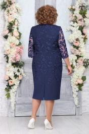 5753 Платье женское Платье женское, полуприлегающего силуэта, чуть зауженное к низу. Длина изделия по среднему шву спинки 106,0 см. На детали переда и спинки нашит гипюр с опущенными веточками к низу изделия. Нагрудные выточки выходят из проймы. В среднем шве спинки обработана застёжка на потайную тесьму молнию и шлица. Горловина круглая, углублённая спереди, обтачная. Рукава втачные, одношовные, длиной 45,0 см. из гипюра с фестонами внизу, пройма окантованная. Ширина рукава по линии плеча платья / Ширина платья на уровне талии, см 58р – 44/112см, 60р – 46/116 см, 62р - 47,5/120 см, 64р – 49/124 см, 66р – 50,5/128 см.