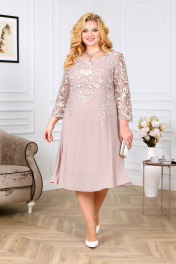 Нарядное платье с кружевом и гипюром для праздников Ninele 5922 пудра