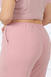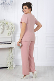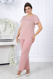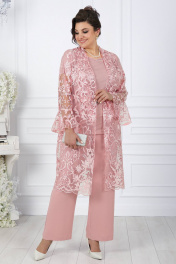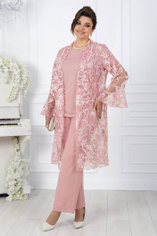 5989 Комплект брючный Представляем вашему вниманию изысканный вечерний брючный костюм, созданный для женщин с великолепными формами. Кардиган этого костюма играет ключевую роль в создании правильного силуэта для женщин больших размеров. Мягкие линии и длина кардигана подчеркивают достоинства фигуры, при этом даря ощущение уверенности и гармонии. Эта длина визуально вытягивает силуэт, создавая стройный и изящный образ. Этот вечерний брючный костюм станет прекрасным воплощением вашего стиля и изысканности в праздничных событиях. Комплект брючный 3-х предметный, состоящий из кардигана, выполненного из гипюра, футболки, из трикотажного полотна "масло" и брюк, из костюмно-плательной ткани. Кардиган прямого силуэта, длиной по середине спинки: размеры р.46-52 - 107 см; размеры р.54-62 - 108 см. от шва втачивания воротника. Перед с нагрудной вытачкой идущей от шва втачивания воротника. Спинка с талиевыми вытачками. Горловина спинки округлой формы, горловина переда V- образная, углубленная, со стояче-отложным воротником "апаш". Низ переда, спинки, линия отлета воротника оформлены фестонами. Рукава втачные, одношовные, с притачными воланами. Длина рукавов 60 см. Футболка полуприлегающего силуэта, длиной по середине спинки: размеры р.46-52 - 61 см;. размеры р.54-62 - 63 см. Перед с нагрудными вытачками, идущими из пройм. Спинка с талиевыми вытачками. Горловина спинки округлая. Горловина переда округлая, углубленная, с притачной планкой. На 5-ти участках планка присборена и декорирована 3-мя пришивными бусинами на каждой сборке. Рукава втачные, одношовные, длиной: размеры р.46-52 - 19 см; размеры р.54-62 - 22 см. Брюки классические, расширенные к низу, с посадкой на талии, на притачном поясе, с застёжкой на тесьму-«молния», расположенную в среднем шве передних половинок, и 1 петлю и 1 пуговицу на поясе. Передние и задние половинки брюк с талиевыми вытачками, идущими от пояса вниз, с заутюженными стрелками, с боковыми наклонными карманами на передних половинках. Для лучшего прилегания брюк в области талии в поясе со стороны спинки вставлена резинка.