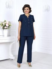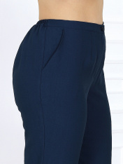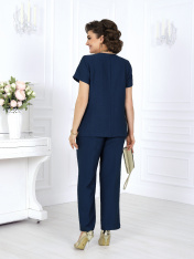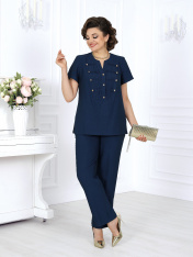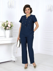 6003 Комплект брючный Костюм двойка сочетает в себе элементы делового и офисного стиля, что позволяет использовать его не только для торжественных случаев, но и для ежедневной работы в офисе. Его универсальность и лаконичность дизайна подойдут для самых разнообразных событий, будь то корпоративный вечер, праздничный ужин или важное деловое совещание. Натуральная ткань обеспечивает дышащий эффект, поддерживая комфорт в теплую погоду. Комплект брючный 2-х предметный, состоящий из блузки и брюк. Блузка полуприлегающего силуэта, выполнена из вискозного полотна. Модель с плечевыми накладками и разрезами в боковых швах. Перед декорирован вставками с застроченными вертикальными защипами и отрезными фигурными планками, застегивающимися на 3 петли и 3 пуговицы. От планок к швам притачивания вставок направлены навесные петли, застегнутые на пуговицы. Спинка со средним швом; круглая горловина спинки обработана отрезной фигурной бейкой. Рукав короткий, втачной. Длина блузки – 66,5 (46-50 р-р) см, 69 см (52-60 р-р); длина рукава – 19,5 см (46-50 р-р), 20,0 (52-60 р-р) см. Брюки классические, с посадкой на талии, выполнены из вискозного полотна. Модель с центральной застёжкой на тесьму-«молнию», на притачном поясе, застегивающемся на петлю и пуговицу. Передние и задние половинки брюк с талиевыми вытачками, направленными от пояса вниз. Спереди обработаны боковые наклонные карманы. Для лучшего прилегания брюк в области талии в поясе по задним половинкам вставлена эластичная лента. Длина брюк по боковому (с поясом) – 101,5 см (46-50 р-р), 102,5 см (52-54 р-р), 103,5 см (56-60 р-р).
