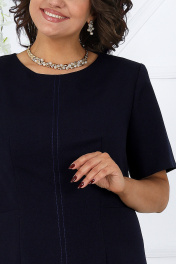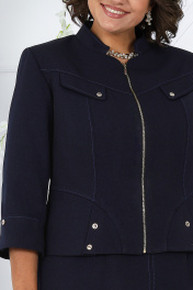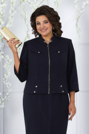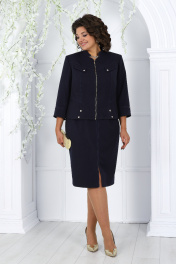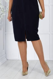 6026 Комплект женский Женский костюм, состоящий из платья футляра и жакета на молнии, идеально подходит для деловых встреч, офисных будней и праздничных мероприятий. Деловой стиль костюма делает его незаменимой частью офисного дресс-кода, а его строгий характер позволит выглядеть уместно и на праздничном событии. Комплект женский 2-х предметный, состоящий из жакета и платья. Жакет полуприлегающего силуэта, выполнен из костюмной поливискозы. Модель на подкладке, с плечевыми накладками, с центральной застежкой на металлическую тесьму-«молнию». Верхняя часть переда с фигурными кокетками и выходящими из-под них фигурными клапанами с металлическими пуговицами по концам. Нижняя часть переда с фигурным подрезом, в котором расположена шлица, закрепленная на 2 пуговицы. Перед с рельефными швами, проходящими через центр груди и направленными от кокетки вниз до шлицы. Спинка со средним и рельефными швами, направленными от пройм до низа. Воротник-стойка с закругленными концами. Рукав длиной ¾, втачной, с имитацией отложной манжеты по низу, закрепленной на 1 пуговицу. По воротнику, клапанам, кокеткам, рельефным швам переда и спинки, по нижним подрезам переда и манжетам прострочена отделочная строчка контрастной нитью. Длина жакета – 54 см, длина рукава – 48 см. Платье полуприлегающего силуэта, выполнено из костюмной поливискозы. Модель на трикотажной подкладке, с плечевыми накладками. Перед с талиевыми вытачками, с горизонтальным подрезом по линии талии от бокового шва к вытачкам, со средним швом, в нижней части которого расположен разрез. По обе стороны среднего шва прострочена отделочная строчка контрастной нитью. Спинка с талиевыми вытачками, со средним швом, в верхней части которого обработана застежка на потайную тесьму- «молнию» (50 см). Горловина спинки и переда округлой формы, по переду углубленная. Рукав короткий, втачной. Длина платья – 103 см. Длина рукава – 27 см.