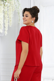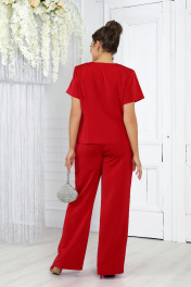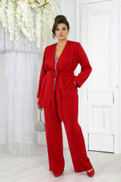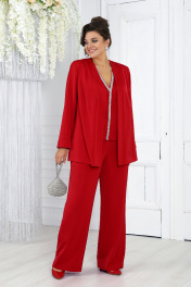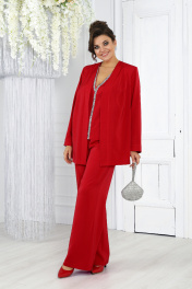 6033 Комплект брючный Этот костюм прямого силуэта обеспечивает комфорт и свободу движений. Декоративная тесьма со стразами визуально удлиняет силуэт, создавая эффект гармонии и стройности. Этот комплект идеально подходит для женщин больших размеров и отлично формирует правильный силуэт, подчеркивая достоинства фигуры. Отличный выбор для новогоднего корпоратива, торжественных мероприятий, свадеб и юбилеев. Комплект брючный 3-х предметный, состоящий из кардигана, блузки и брюк. Кардиган прямого силуэта, выполнен из костюмно-плательного сатина. Модель без подкладки, застежки и плечевых накладок. Перед с нагрудными вытачками, направленными от пройм, и отрезной планкой по борту. Спинка с талиевыми вытачками. Рукав длинный, втачной, с притачной замкнутой манжетой по низу. Комплектуется съёмным завязывающимся поясом. Длина кардигана-75 см, длина рукава-60 см. Блузка полуприлегающего силуэта, выполнена из костюмно-плательного сатина. Модель без подкладки и застежки, с плечевыми накладками. Перед с нагрудными вытачками, направленными от пройм. Спинка с талиевыми вытачками и средним швом. V-образный вырез горловины и центр переда декорированы тесьмой со стразами. Рукав короткий, втачной. Длина блузки-57 см, длина рукава-21 см. Брюки классические длинные, прямого силуэта, с посадкой на талии, выполнены из костюмно-плательного сатина. Модель без застёжки, на притачном поясе, с эластичной лентой внутри. Передние половинки брюк с боковыми наклонными карманами. Длина брюк по боковому (с поясом)-107 см (52-54 р-р), 108 см (56-60 р-р).