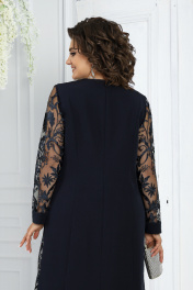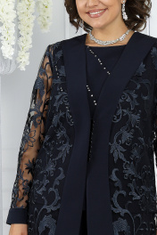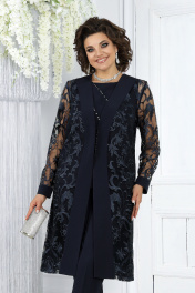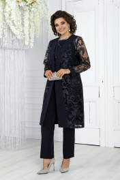 Нарядный брючный комплект с кардиганом и блузкой из кружевных тканей Ninele 6038 синий