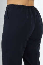 6038 Комплект брючный Откройте для себя стильный брючный костюм, настоящую находку для поклонниц элегантного стиля. Этот костюм включает кардиган, блузку и брюки, идеально сочетающиеся друг с другом и подчеркивающие женственность и уверенность. Этот брючный костюм станет вашим верным спутником в самых разных ситуациях — от деловых встреч до вечерних мероприятий, даря комфорт и стиль на протяжении всего вечера. Комплект брючный 3-х предметный, состоящий из кардигана, блузки и брюк; выполнен из костюмно-плательной ткани и гипюра. Кардиган полуприлегающего силуэта, комбинированный. Модель без плечевых накладок. Перед с отрезной планкой из основной ткани по борту и застежкой на 10 навесных петель и пуговиц. Спинка на подкладке, со средним швом и рельефами, направленными от плечевых швов до низа. Рукав длинный, втачной, с притачной замкнутой манжетой по низу. Перед и рукава выполнены из гипюра; планки, манжеты и спинка-из основной ткани. Длина кардигана-105 см (48-52 р-р), 106,5 см. (54-60 р-р), длина рукава-60 см. Блузка полуприлегающего силуэта, выполнена из основной ткани. Модель без подкладки, рукавов и плечевых накладок. На переде обработаны 4 подреза: один направлен по диагонали от левой проймы до низа, три остальных, декорированных стразами, подреза начинаются в области правого плеча, расходятся «лучами» и входят в шов первого подреза. Спинка с талиевыми вытачками и средним швом, в верхней части которого расположена застежка на потайную тесьму-«молнию» (50 см). Горловина округлая, углубленная спереди. Изделие без рукавов, проймы обработаны узкой косой бейкой. Длина блузки-60 см. Брюки классические длинные, со стрелками и посадкой на талии, выполнены из основной ткани. Модель с центральной застёжкой на тесьму-«молнию», на притачном поясе, застегивающемся на петлю и пуговицу. Передние и задние половинки брюк с талиевыми вытачками, направленными от пояса вниз. Спереди обработаны боковые наклонные карманы. Для лучшего прилегания брюк в области талии в поясе по задним половинкам вставлена эластичная лента. Длина брюк по боковому (с поясом)-102 см (48-52 р-р), 103 см (54-56 р-р), 104 см (58-60 р-р).