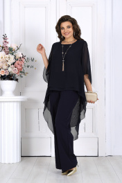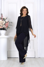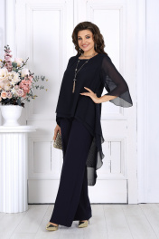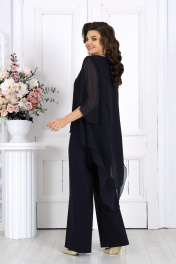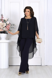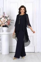 6063 Комплект брючный Элегантный брючный костюм – идеальный выбор для вечернего выхода, торжества или особого случая. Легкая шифоновая туника с асимметричным кроем и струящимися рукавами добавляет образу воздушности и утонченности. Удлиненная спинка делает силуэт элегантным и зрительно вытягивает фигуру. Прямые классические брюки из костюмной ткани великолепно садятся по фигуре, обеспечивая комфорт на протяжении всего дня. Идеально подойдет для вечернего выхода, праздников и торжественных мероприятий. Легкий и женственный образ для любого типа фигуры. Комплект брючный 2-х предметный, состоящий из туники и брюк. Туника А-образного силуэта, выполнена из шифона. Модель без подкладки и застежки, с плечевыми накладками. Низ туники асимметричной формы: укороченный спереди и удлиненный к центру спинки. Перед и спинка состоят из двух разных по длине слоев: верхний спереди короче нижнего на 4 см, а по спинке на 16 см. Горловина переда и спинки округлая, по переду слегка углубленная. Рукав, втачной, расширенный, с фигурным низом. Длина туники (по середине спинки) – 118 см (46-50 р-р), 119 см (52-60 р-р); длина рукава – 41 см (46-50 р-р), 42 см (52-60 р-р). Брюки классические длинные, прямого силуэта, с посадкой на талии, выполнены из костюмно-плательного ткани. Модель с центральной застёжкой на тесьму-«молнию», на притачном поясе, застегивающемся на петлю и пуговицу. Передние и задние половинки брюк с талиевыми вытачками, направленными от пояса вниз. Спереди обработаны боковые наклонные карманы. Для лучшего прилегания брюк в области талии в поясе, по задним половинкам вставлена эластичная лента. Длина брюк по боковому (с поясом) – 107 см (46-50 р-р.), 108 см (52-54 р-р), 109 см (56-60 р-р).