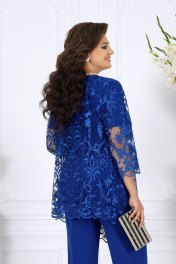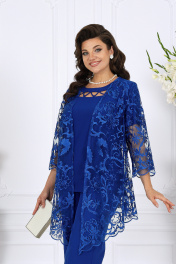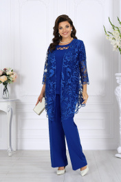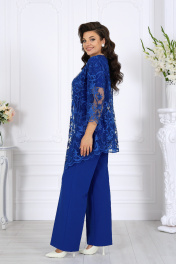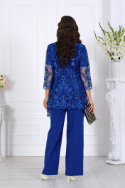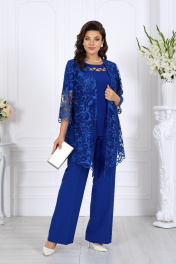 6073 Комплект брючный Праздничный брючный костюм-тройка для полных женщин — элегантный выбор для особых случаев и стильных деловых образов. Комплект состоит из трёх предметов: изысканного кардигана из гипюра, мягкой трикотажной блузки и классических брюк со стрелками. Такой ансамбль выглядит нарядно, подчеркивает женственность и формирует правильный силуэт даже для фигур plus size. Такой универсальный костюм тройка подходит для праздничных мероприятий, свадеб, юбилеев, корпоративов, а также для делового офиса или официальных встреч. Он помогает создать безупречный, продуманный образ, скрыть небольшие несовершенства и подчеркнуть достоинства фигуры. Комплект брючный 3-х предметный, состоящий из кардигана, блузки и брюк. Кардиган прямого силуэта, выполнен из гипюра. Модель без застежки, без подкладки и плечевых накладок. Низ кардигана удлинен спереди. Рукав трехчетвертной. Низ изделия и низ рукава оформлены фестонами. Длина кардигана – 74 см; длина рукава – 48 см. Блузка полуприлегающего силуэта, выполнена из трикотажного полотна «масло». Модель без плечевых накладок. Фигурный вырез переда с декоративным элементом в виде узора, выложенного шнуром из основной ткани. Горловина округлой формы, с отрезной бейкой по переду. Рукав короткий, втачной. Длина блузки – 63 см; длина рукава – 22 см. Брюки классические, длинные, с посадкой на талии, выполнены из костюмно- плательной ткани. Модель со стрелками. Передние и задние половинки брюк с талиевыми вытачками, направленными от пояса вниз. Спереди обработаны наклонные боковые карманы и центральная застёжка на тесьму-«молнию». Притачной пояс застегивается на 1 петлю и 1 пуговицу; для лучшего прилегания по линии талии в притачном поясе предусмотрена эластичная лента, вставленная по спинке. Длина брюк по боковому (с поясом) – 107 см (50-52 р-р), 108 см 954-58 р-р).