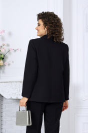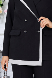 6076 Костюм брючный Стильный брючный костюм двойка — эффектный выбор для офиса, деловой встречи или праздничного выхода. Жакет с оригинальной асимметричной застёжкой и контрастной декоративной вставкой подчёркивает индивидуальность образа. Прямой силуэт с акцентом на талию визуально вытягивает фигуру и формирует правильные пропорции. Воротник пиджачного типа и карманы с клапанами добавляют строгости и элегантности. Подходит для женщин с разными типами фигуры, в том числе для полных — подчёркивает достоинства, не сковывает движения, дарит уверенность. Костюм брючный 2-х предметный, состоящий из жакета и брюк. Жакет двубортный, полуприлегающего силуэта, выполнен из костюмной поливискозы. Модель на подкладке, с плечевыми накладкам. Спереди обработаны рельефные швы, направленные от пройм до низа; в нижней части переда расположены прорезные карманы с клапаном, в верхней, слева – имитация прорезного кармана с листочкой. Перед со смещенной внешней застежкой на 2 декоративные пуговицы и внутренней -- на 2 потайные. Спинка со средним швом. Воротник пиджачного типа. Рукав длинный, втачной. Правая сторона жакета дополнена декоративной вставкой, имитирующей двойную деталь переда. Длина жакета - 68 см; длина рукава - 61 см. Брюки классические, с кантами и посадкой на талии, выполнены из костюмной поливискозы. Модель с центральной застёжкой на тесьму-«молнию», на притачном поясе, застегивающемся на петлю и пуговицу. Передние и задние половинки брюк с талиевыми вытачками, направленными от пояса вниз. Спереди обработаны боковые наклонные карманы. Для лучшего прилегания брюк в области талии в поясе, по задним половинкам, вставлена эластичная лента. Длина брюк по боковому (с поясом)-107 см (50-52 р-р), 108 см (54-58 р-р).