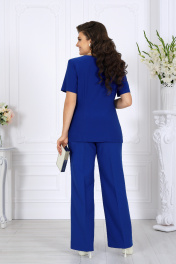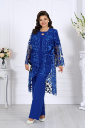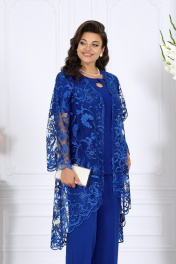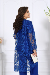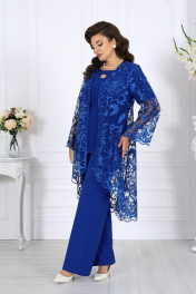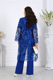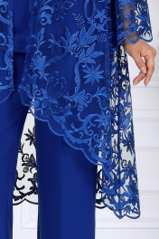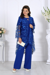 6078 Комплект брючный Роскошный и в то же время практичный костюм-тройка создан для женщин, которые ценят комфорт, безупречный крой и изысканный стиль. Он идеально подойдёт для торжественных мероприятий, свадеб, деловых приёмов, корпоративных вечеров и любых событий, где хочется выглядеть эффектно и уверенно. Воздушный гипюровый кардиган прямого силуэта с удлинённой спинкой и фигурными фестонами по краю создаёт лёгкость и утончённость образа. Полуприлегающая блузка из эластичного трикотажа «масло» мягко повторяет линии фигуры, не сковывая движения. Классические прямые брюки из костюмно-плательной ткани со стрелками визуально вытягивают силуэт, формируя изящные пропорции и обеспечивая комфорт в течение всего дня. Такой костюм подчеркнёт вкус и статус своей обладательницы, оставаясь универсальным решением для множества событий — от официальных встреч до праздничных торжеств. Комплект брючный 3-х предметный, состоящий из кардигана, блузки и брюк. Кардиган прямого силуэта, выполнен из гипюра. Модель без застежки, без подкладки и плечевых накладок. Низ кардигана удлинен по спинке. Рукав втачной, длинный. Низ изделия и низ рукава оформлены фестонами. Длина кардигана – 109 см; длина рукава – 58,5 см. Блузка полуприлегающего силуэта, выполнена из трикотажного полотна «масло». Модель без плечевых накладок. Горловина округлой формы, спереди оформлена фигурным вырезом и отрезной бейкой. Рукав короткий, втачной. Длина блузки – 63 см; длина рукава – 23 см. Брюки классические, длинные, с посадкой на талии, выполнены из костюмно- плательной ткани. Модель со стрелками. Передние и задние половинки брюк с талиевыми вытачками, направленными от пояса вниз. Спереди обработаны наклонные боковые карманы и центральная застёжка на тесьму-«молнию». Притачной пояс застегивается на 1 петлю и 1 пуговицу; для лучшего прилегания по линии талии в притачном поясе предусмотрена эластичная лента, вставленная по спинке. Длина брюк по боковому (с поясом) – 107см (50-52 р-р), 108 см (54-58 р-р).