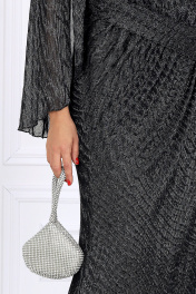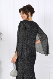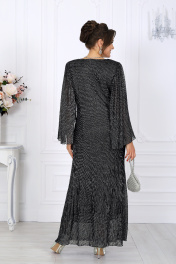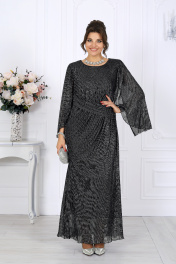 6082 Платье женское Длинное вечернее платье из элегантной сетки-гофре с нитью люрекс мерцает при каждом движении, словно улавливая в себе отблески огней. Этот деликатный блеск смотрится дорого и изысканно, создавая неповторимый аристократичный образ. Особое внимание заслуживает рукав — лёгкий, без шва, с изящно ниспадающими краями. Его воздушность придаёт образу загадочность и утончённость, а необычный крой с драпировкой и сборкой по линии плеч делает движения пластичными и грациозными. Фигурный вырез горловины придаёт образу нотку смелости, но остаётся выдержанным и гармоничным. Это платье прекрасно подходит для особых случаев: свадьбы, юбилея, званого вечера или торжества. Оно одинаково уместно в праздничной, свадебной или официальной атмосфере, позволяя вам ощущать себя королевой момента. Модель идеально подойдёт женщинам с формами — за счёт продуманного кроя она выгодно подчёркивает достоинства и деликатно скрывает лишнее, формируя правильный силуэт. Выбирая эту модель, вы выбираете не просто наряд, а состояние души — ощущение уверенности, стиля и особой значимости каждого момента. Платье женское, прилегающего силуэта с расширением к низу, выполнено из сетки-гофре с нитью «люрекс». Модель на трикотажной подкладке, без застежки, с плечевыми накладками. В верхней части переда косой подрез со сборкой; в шов подреза входит задрапированный декоративный элемент. На спинке обработаны талиевые вытачки. Вырез горловины переда и спинки округлой формы, по переду углубленный. Рукав без шва, с отлетными краями и фигурным низом, по окату сборка; крепится к пройме только в верхней части. Пройма окантована узкой косой бейкой из основного материала Длина платья – 140 см; длина рукава – 54 см.