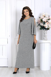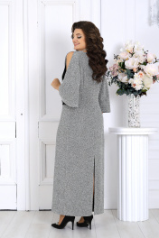 6083 Платье женское Это длинное вечернее платье из ткани с люрексом создано, чтобы подчеркнуть вашу женственность и уверенность. Блестящее трикотажное полотно мягко играет при каждом движении, не сковывая и красиво струясь по фигуре. Благодаря полуприлегающему силуэту и трикотажной подкладке, модель обеспечивает идеальную посадку на фигуре и комфорт на протяжении всего вечера. Рукава 3/4 с изящными разрезами «капля» открывают плечи, придавая образу лёгкость и торжественность. На спинке — эффектная деталь: V-образный вырез с декоративными перемычками, подчёркивающий линию плеч и добавляющий утончённости. Разрез сзади делает походку свободной и визуально вытягивает силуэт. Платье идеально подойдёт для любого особенного события — праздника, свадьбы, банкета, новогоднего вечера или торжества. Его можно дополнить элегантными аксессуарами и блестящими туфлями — и вы готовы блистать! Платье женское полуприлегающего силуэта, выполнено из трикотажного полотна с фактурной лицевой стороной «люрекс». Модель на трикотажной подкладке, без застежки и плечевых накладок. Перед платья с нагрудными вытачками, направленными от проймы. Спинка с талиевыми вытачками и разрезом в нижней части среднего шва. Края V-образной горловины спинки фиксируются тремя перемычками из основного материала; горловина переда круглой формы. Рукав трехчетвертной, расширенный, с вырезом «капля» от плеча. Длина платья -- 144 см; длина рукава - 49 см.