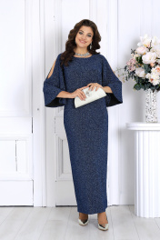 6083 Платье женское Это длинное вечернее платье из ткани с люрексом создано, чтобы подчеркнуть вашу женственность и уверенность. Блестящее трикотажное полотно мягко играет при каждом движении, не сковывая и красиво струясь по фигуре. Благодаря полуприлегающему силуэту и трикотажной подкладке, модель обеспечивает идеальную посадку на фигуре и комфорт на протяжении всего вечера. Рукава 3/4 с изящными разрезами «капля» открывают плечи, придавая образу лёгкость и торжественность. На спинке — эффектная деталь: V-образный вырез с декоративными перемычками, подчёркивающий линию плеч и добавляющий утончённости. Разрез сзади делает походку свободной и визуально вытягивает силуэт. Платье идеально подойдёт для любого особенного события — праздника, свадьбы, банкета, новогоднего вечера или торжества. Его можно дополнить элегантными аксессуарами и блестящими туфлями — и вы готовы блистать! Платье женское полуприлегающего силуэта, выполнено из трикотажного полотна с фактурной лицевой стороной «люрекс». Модель на трикотажной подкладке, без застежки и плечевых накладок. Перед платья с нагрудными вытачками, направленными от проймы. Спинка с талиевыми вытачками и разрезом в нижней части среднего шва. Края V-образной горловины спинки фиксируются тремя перемычками из основного материала; горловина переда круглой формы. Рукав трехчетвертной, расширенный, с вырезом «капля» от плеча. Длина платья -- 144 см; длина рукава - 49 см.