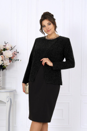 6085 Этот костюм — гармония классики и современности, сдержанная роскошь и продуманная функциональность. Жакет выполнен из трикотажного полотна с благородным мерцанием люрекса - лёгкое свечение ткани придаёт образу торжественность и статусность. Фигурный крой бортов с асимметричной застёжкой визуально вытягивает силуэт, делая талию более выразительной. Подкладка и аккуратные плечевые накладки формируют чёткий, «дорогой» контур, характерный для премиальных моделей. Платье классической длины с утончённой формой выреза придают образу элегантность, а продуманная конструкция со шлицей на спинке гарантирует свободу движений. Этот костюм создан для женщин, которые знают себе цену и выбирают безупречное качество. Он одинаково уместен и в офисе, и на торжестве, и в ресторане — достаточно лишь сменить аксессуары. В нём вы будете чувствовать себя уверенно, женственно и благородно. Комплект женский, 2-х предметный, состоящий из жакета и платья. Жакет полуприлегающего силуэта, выполнен из трикотажного полотна с фактурной лицевой стороной «люрекс». Модель на трикотажной подкладке, с плечевыми накладками. Перед с нагрудными вытачками, направленными от проймы; спинка – с талиевыми. Фигурные борта фиксируются на запах по линии горловины при помощи внутренней застежки на 2 петли и 2 потайные пуговицы и внешней застежки - на 2 петли и 2 декоративные пуговицы, обтянутые основным материалом. Горловина округлой формой, спереди углубленная. Рукав втачной, длинный. Длина жакета – 62 см; длина рукава – 59 см. Платье полуприлегающего силуэта, выполнено из костюмно-плательной ткани. Модель на трикотажной подкладке, с плечевыми накладками. Перед и спинка с рельефными швами, направленными от проймы до низа. В верхней части среднего шва спинки обработана застежка на потайную тесьму-«молнию» (50см); в нижней части шва – шлица. Горловина округлой формы, спереди углубленная. Рукав втачной, короткий. Длина платья – 104 см; длина рукава – 25 см.