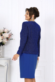 6085 Этот костюм — гармония классики и современности, сдержанная роскошь и продуманная функциональность. Жакет выполнен из трикотажного полотна с благородным мерцанием люрекса - лёгкое свечение ткани придаёт образу торжественность и статусность. Фигурный крой бортов с асимметричной застёжкой визуально вытягивает силуэт, делая талию более выразительной. Подкладка и аккуратные плечевые накладки формируют чёткий, «дорогой» контур, характерный для премиальных моделей. Платье классической длины с утончённой формой выреза придают образу элегантность, а продуманная конструкция со шлицей на спинке гарантирует свободу движений. Этот костюм создан для женщин, которые знают себе цену и выбирают безупречное качество. Он одинаково уместен и в офисе, и на торжестве, и в ресторане — достаточно лишь сменить аксессуары. В нём вы будете чувствовать себя уверенно, женственно и благородно. Комплект женский, 2-х предметный, состоящий из жакета и платья. Жакет полуприлегающего силуэта, выполнен из трикотажного полотна с фактурной лицевой стороной «люрекс». Модель на трикотажной подкладке, с плечевыми накладками. Перед с нагрудными вытачками, направленными от проймы; спинка – с талиевыми. Фигурные борта фиксируются на запах по линии горловины при помощи внутренней застежки на 2 петли и 2 потайные пуговицы и внешней застежки - на 2 петли и 2 декоративные пуговицы, обтянутые основным материалом. Горловина округлой формой, спереди углубленная. Рукав втачной, длинный. Длина жакета – 62 см; длина рукава – 59 см. Платье полуприлегающего силуэта, выполнено из костюмно-плательной ткани. Модель на трикотажной подкладке, с плечевыми накладками. Перед и спинка с рельефными швами, направленными от проймы до низа. В верхней части среднего шва спинки обработана застежка на потайную тесьму-«молнию» (50см); в нижней части шва – шлица. Горловина округлой формы, спереди углубленная. Рукав втачной, короткий. Длина платья – 104 см; длина рукава – 25 см.