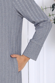 6090 Платье женское Элегантное офисное платье с карманами и разрезом для больших размеров. Пиджачный воротник модели придает особую строгость и стиль, идеально сочетаясь с деловым имиджем. Длинные рукава с притачными манжетами завершают образ, добавляя нотки классической элегантности. Это платье дарит не только стиль, но и ощущение уверенности, подчеркивая ваш статус и утонченный вкус. Подходит для женщин с любыми формами, создавая идеальный силуэт даже в больших размерах. Платье женское прямого силуэта, выполнено из трикотажного полотна «елочка». Модель без подкладки, без застежки. В боковых швах платья обработаны карманы. По переду – имитация потайной бортовой застежки; от плечевых швов к центру груди направлены вытачки. Спинка со средним швом. Воротник пиджачного типа. Рукав втачной, длинный, с притачной, замкнутой манжетой по низу. Длина платья – 123 см.; длина рукава – 59 см