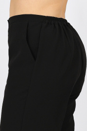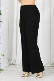 6098 Комплект брючный Блузка прямого силуэта, выполнена из сатина. Модель со спущенной линией плеча. Рукав втачной, длинный с двумя односторонними складками по низу и притачной манжетой, которая застегивается на петлю и пуговицу. Перед со смещенной фигурной застежкой, на притачной планке 3 петли и пуговицы -действующие, а 6 пуговиц декоративные. Горловина оформлена отложным воротником на отрезной стойке. Длина блузки – 66 см (50-58 р-р); длина рукава (от горловины) – 54,5 см (50-52 р-р), 55,5 см (54-58 р-р). Брюки классические со стрелками с посадкой на талии, выполнены из вискозного полотна. Модель с центральной застёжкой на тесьму-«молнию», на притачном поясе, застегивающемся на петлю и пуговицу. Передние и задние половинки брюк с талиевыми вытачками, направленными от пояса вниз. Спереди обработаны боковые наклонные карманы. Для лучшего прилегания брюк в области талии в поясе по задним половинкам вставлена эластичная лента. Длина брюк по боковому (с поясом) – 107 см (50-52р-р);108 см (54-58р-р)